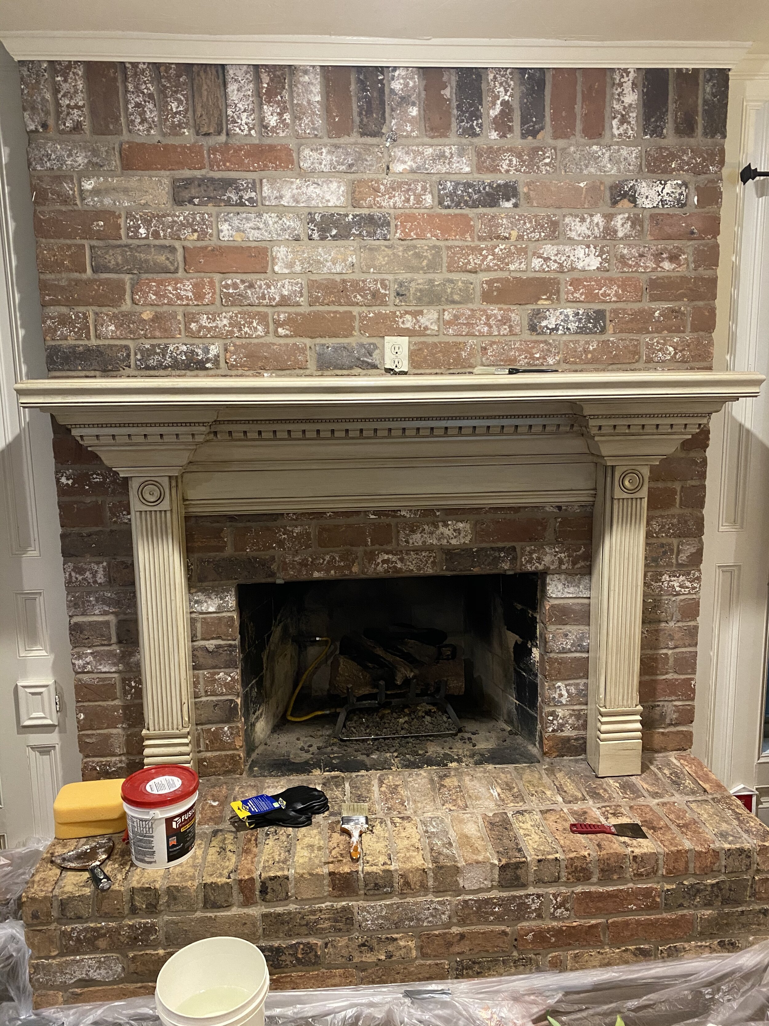 But i felt like the red brick made the room look a little dark and outdated. Add a german schmear to a fireplace. This can be done on any brick or stone in your home! A diy german smear fireplace can make your decor worthwhile manifolds. With german schmear, you are still going to see your original brick peeking through the schmear. She started smearing the grout lines with a thick layer of mortar and then brushed over the bricks with the excess mortar. From how to whitewash a brick mortar to a perfect faux german schmear fireplace, you can get many perfect and whimsical fireplace ideas below. It is one of my favorite episodes still. Completely change the look of an outdated brick fireplace using a diy german schmear technique. There was an old buck stove in the fireplace before, tsp'd the entire brick scrubbed until completely clean, after applying smear same thing a yellowy color came through. That was the case with our fireplace. So i tackled a faux brick wall a month ago in our master bathroom and part of the whole reason i wanted to do that was so that i could practice a german schmear technique without permanently messing up a permanent fixture in our house. So why not create a german smear fireplace?
